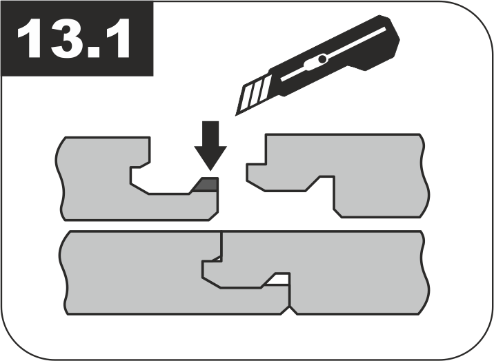 7.4.1 Плашки следующего ряда соединяются сначала по короткой стороне. После этого их нужно соединять по длинной стороне с предыдущим рядом.