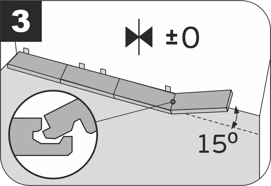 7.3.1 Плашки соединяются по торцевым замкам под углом 15°.