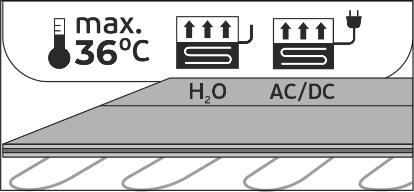 2. При использовании водяной системы тёплого пола температура подачи теплоносителя не должна превышать +36°C.