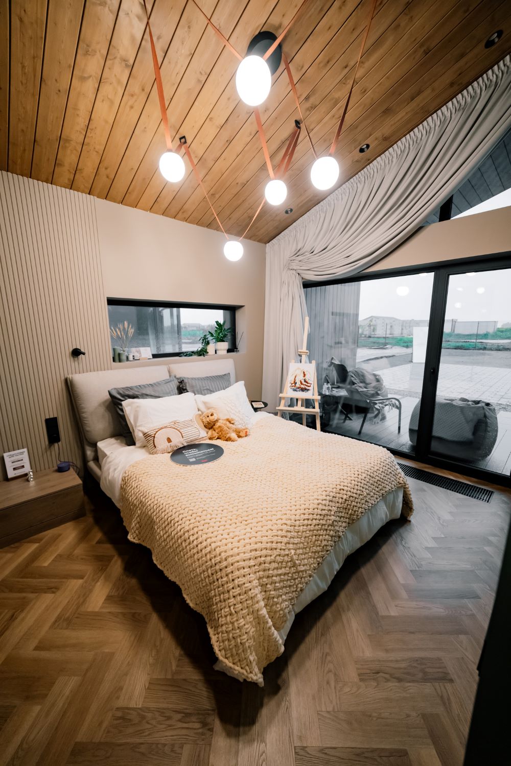 Интерьер дома для Open Village Siberia 2025 спроектирован так, чтобы сюда хотелось просто приехать и отдыхать. Пространство продумано до мелочей: без лишних зон и сложных маршрутов, всё находится в лёгком и логичном доступе. Кухня-гостиная становится местом для общения, отдыха и повседневной жизни.